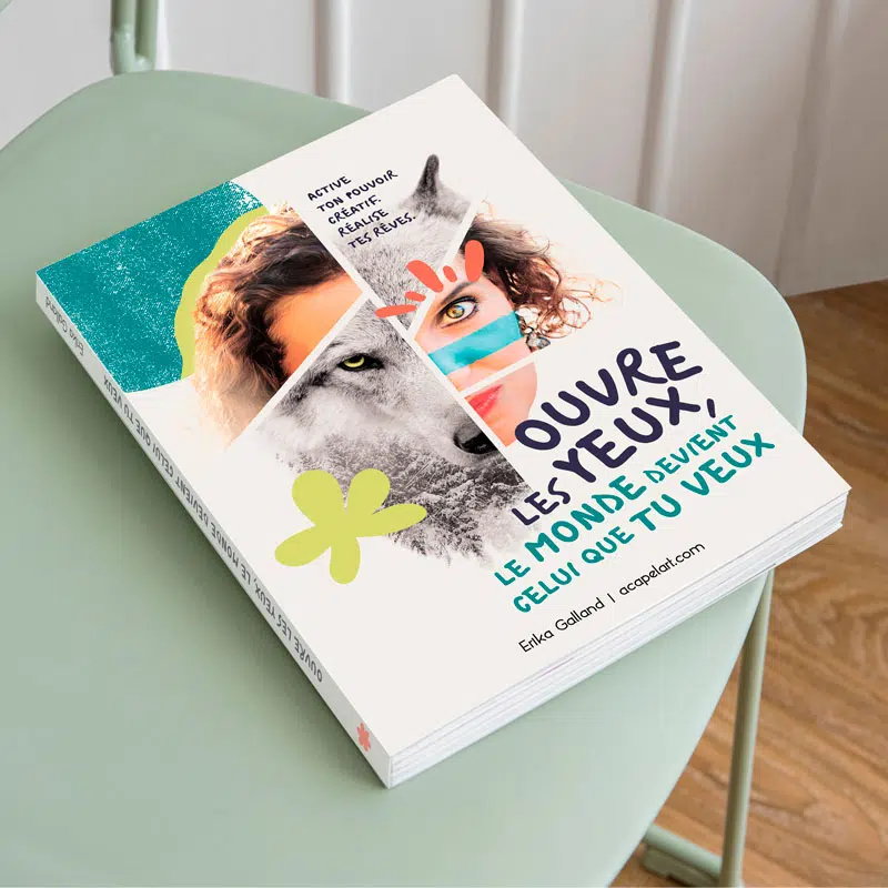 Nous sommes fiers d’avoir accompagné Erika Galland, fondatrice d’Acapelart, dans la création de la couverture de son premier livre, « Ouvre les yeux, le monde devient celui que tu veux ».